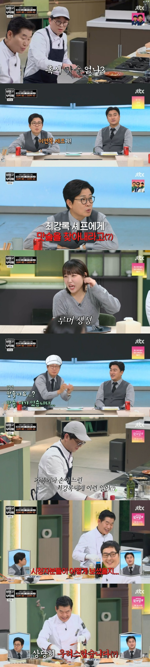 이를 본 김성주는 루머를 만들어냈다. 그는 "이연복이 최강록에게 '강록아 맛술 어딨니?'라며 맛술을 찾아내라고 했다"라고 이야기했고, 안정환은 "가뜩이나 손이 느린 최 셰프인데"라고 거들었다.