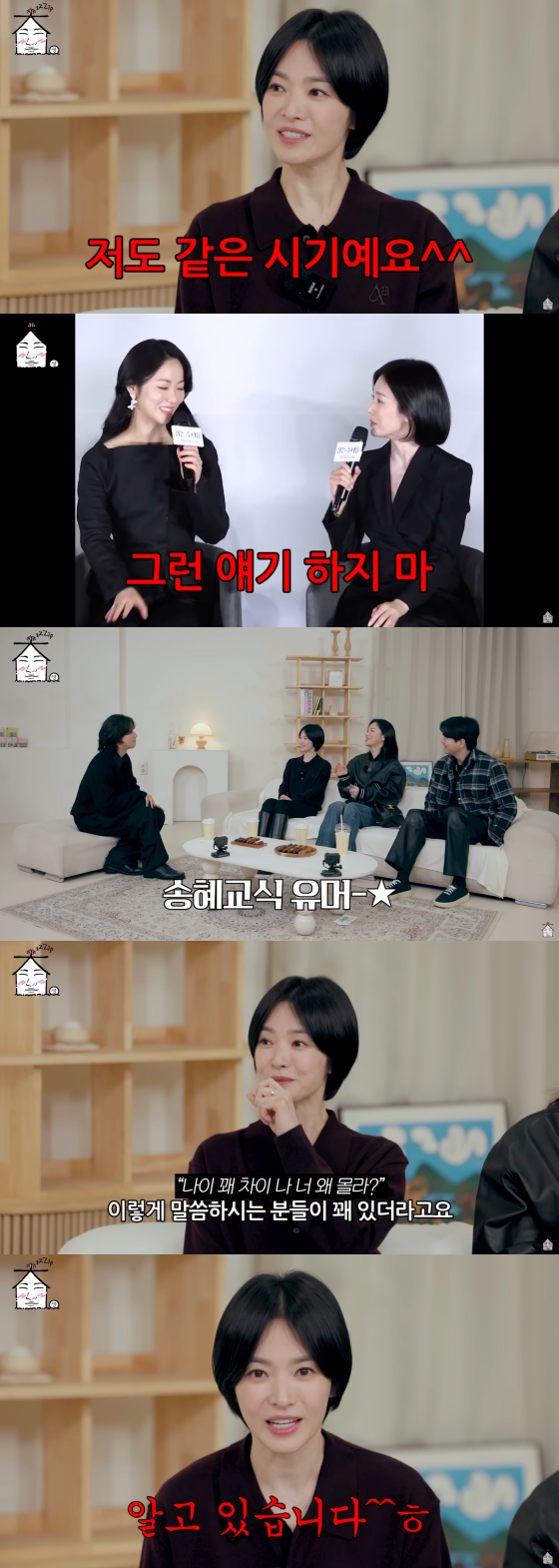 이날 송혜교는 둘 만의 공감대를 공감대를 형성하는 대성과 전여빈을 향해 "저도 같은 시기다"고 농담을 건넸다.