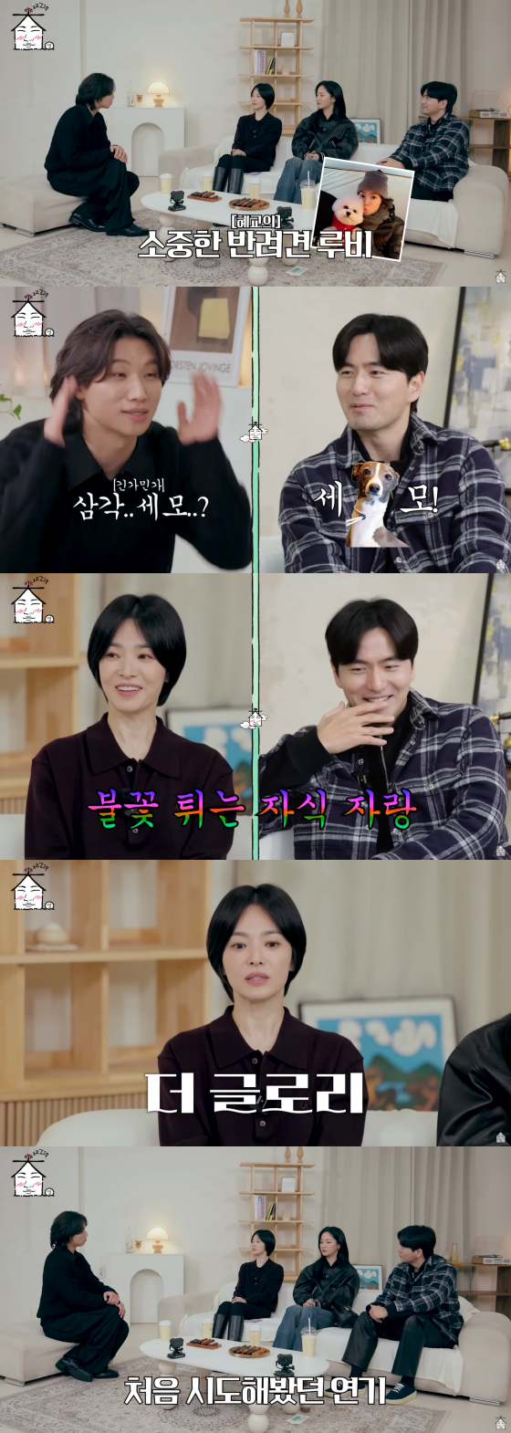 이를 듣던 송혜교는 "루비는 집안에서도 제 옆만 쫓아 다닌다. 루비는 그냥 저만 계속 본다"고 루비와의 애착 관계를 자랑했다.