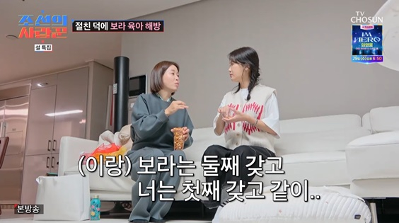 이어 정이랑은 "보라는 둘째 갖고 너는 첫째 갖고 같이"라며 제안했고 이어서 "우인이 보니까 나도 셋째를 갖고 싶더라"라고 말해 눈길을 끌었다.