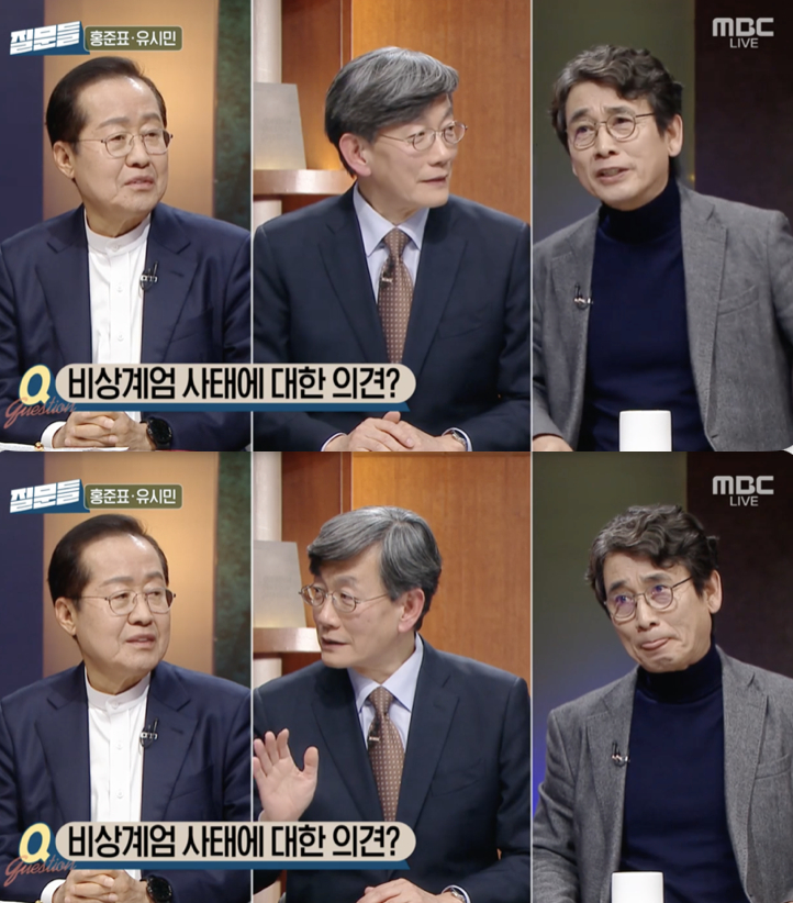사회자 손석희가 12.3 비상계엄에 대한 토론 중 대구 시장 홍준표의 웃음을 지적했다.