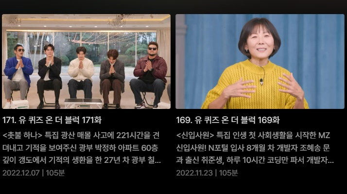30일 OTT 플랫폼 티빙에서는 tvN '유 퀴즈 온 더 블럭'(이하 '유퀴즈') 170화 영상 전체의 다시보기 서비스는 중단됐다. '유퀴즈' 다시보기 영상 중 169화와 171화 사이에 170화만 찾아볼 수 없다.