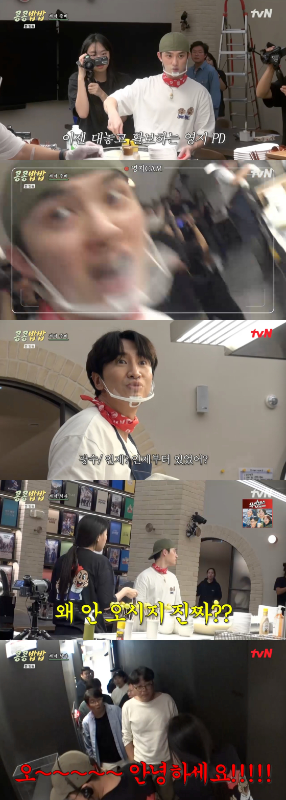 이영지는 PD인 척 두 사람에게 접근했고, 이광수와 도경수는 이 사실을 전혀 모른 채 저녁 식사 만들기에 열을 올렸다.