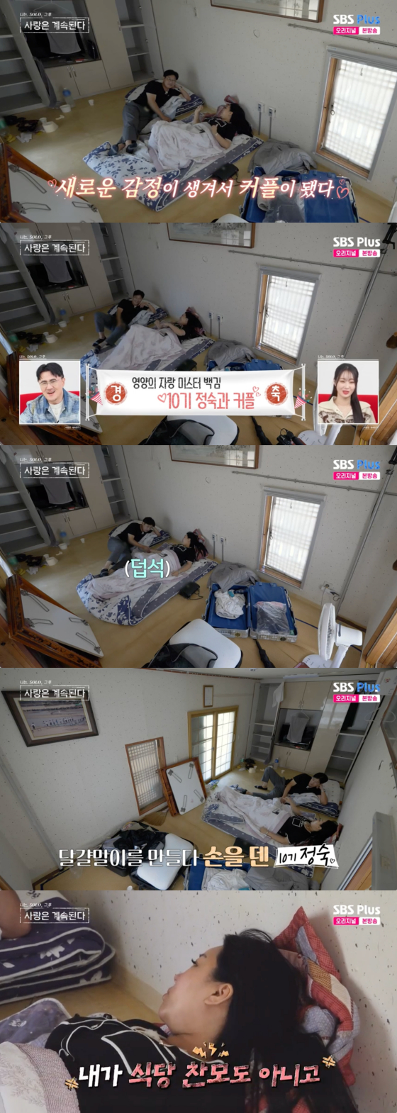 하지만 정숙은 "(우리가) 스토리가 맞지 않냐"며 "내가 오빠한테 욕도 했다가 울다가 고기 먹고 풀다가 갑자기 또 누워서 대화를 하다가 새로운 감정이 생겨서 커플이 됐다는 스토리가 딱 맞는다"고 큰 그림을 그렸다.
