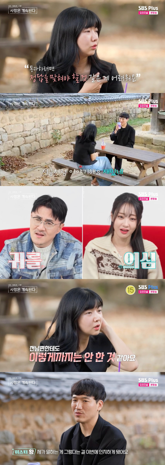 이에 10기 영자는 "미스터 황 님은 즐거움, 재미, 행복이 본인이 원하는 연애에서 중요하다고 하지 않았냐"며 "나는 (미스터 황이) 다이나믹을 원하는 듯한 느낌을 받았다. 내가 그걸 줄 수 있으면 좋겠지만 그걸 만족시킬 수 없을 거 같았다"고 그간 힘들었던 속내를 털어놨다.
