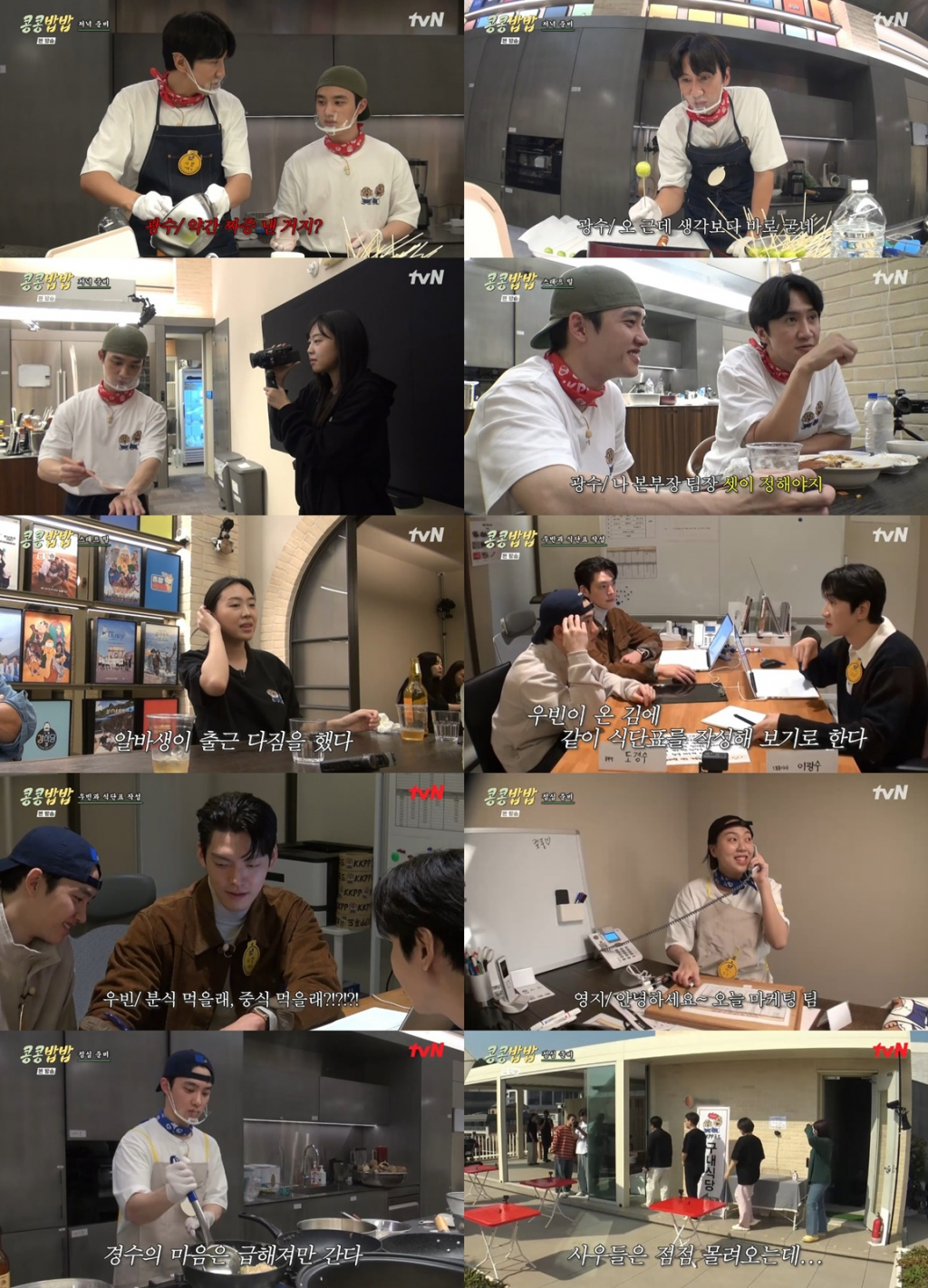 30일 방송된 tvN '콩 심은 데 콩 나고 밥 먹으면 밥심 난다(연출 나영석, 하무성, 이영경)'(이하 '콩콩밥밥')에서는 이광수와 도경수의 구내식당에 알바생 이영지와 감사 김우빈이 출격, 이들의 시너지로 구내식당 운영이 한층 더 원활하게 진행됐다.