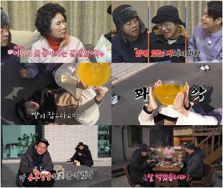 과연 장동민이 멤버들을 위해 준비한 보양식이 무엇인지 궁금증이 치솟는 가운데, 장동민의 어머니는 믹스커피를 타서 멤버들에게 대접한다. 그러자 멤버들은 미리 준비해온 선물을 전달하고, 장동민의 어머니는 아들 친구들의 선물에 '광대승천' 미소를 감추지 못한다. 훈훈한 선물 증정식 후, 멤버들은 곧장 "동민이 어머니 선물 비용을 걸고 '독박 게임'을 해보자"고 말한다. 이에 장동민은 "우리 엄마 선물인데 나도 (독박 게임) 해?"라며 당황하고, 멤버들은 "그게 독박 정신이니까"라고 단호하게 답한다. 오는 2월 1일 오후 8시 20분 방송.