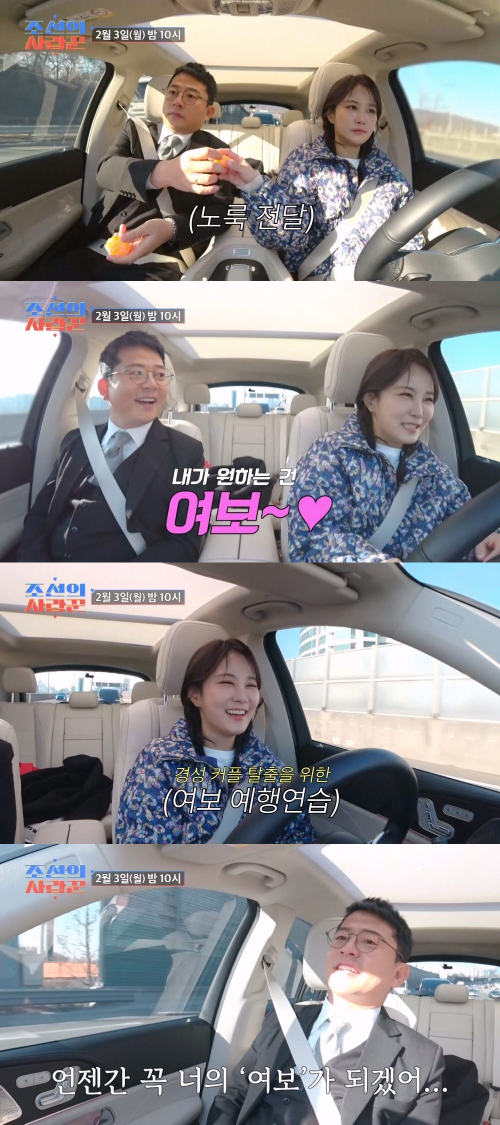 3일 방송될 TV CHOSUN 예능 프로그램 '조선의 사랑꾼'에서는 김지민, 김준호가 김지민의 아버지가 잠든 동해로 함께 떠난다. 최근 녹화에서 정장을 갖춰 입고 한껏 멋 부린 김준호는 운전대를 잡은 김지민에게 직접 귤을 까주는 '외조남(男)' 면모로 설렘을 유발했다.