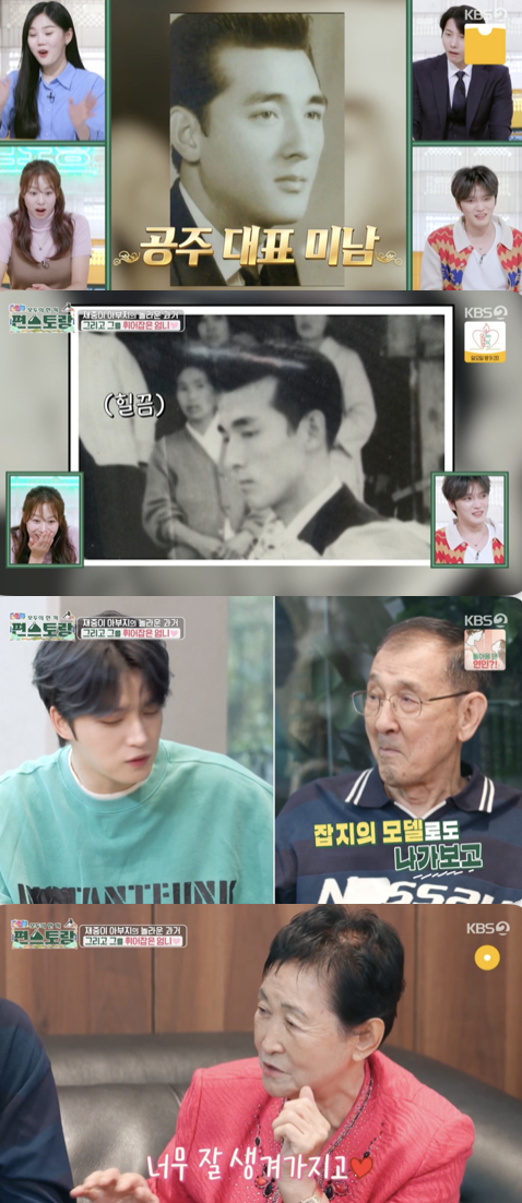 이어진 장면에서는 공주의 대표 미남으로 불리던 부친의 수려한 미모가 담긴 과거 사진이 공개됐다. 김재중은 "그 당시에 '저 서양 사람 누구냐'고 놀림을 당했다고 하더라"라고 하자 MC붐은 "알랭 들롱이다. 그런 오해를 받을 만하다"라고 감탄했다.