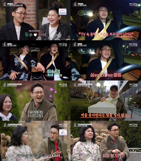 먼저 소지품 선택으로 랜덤 데이트 파트너가 결정됐다. 이영자가 황동주의 소지품인 베개를 선택하면서 두 사람은 드라이브 데이트에 나서게 됐다. 8년 전 두 사람의 첫 만남 이야기가 나오자 이영자는 "안 믿겼다. 그냥 웃기려고 그러나 싶었다"라며 당시의 솔직한 심정을 밝혔다. 이어 "연락하지 그랬어요"라는 이영자의 말에 황동주는 "연락처를 여쭤보고 싶었는데 (실례일 것 같았다)"라며 아쉽게 끝난 첫 만남을 회상했다.