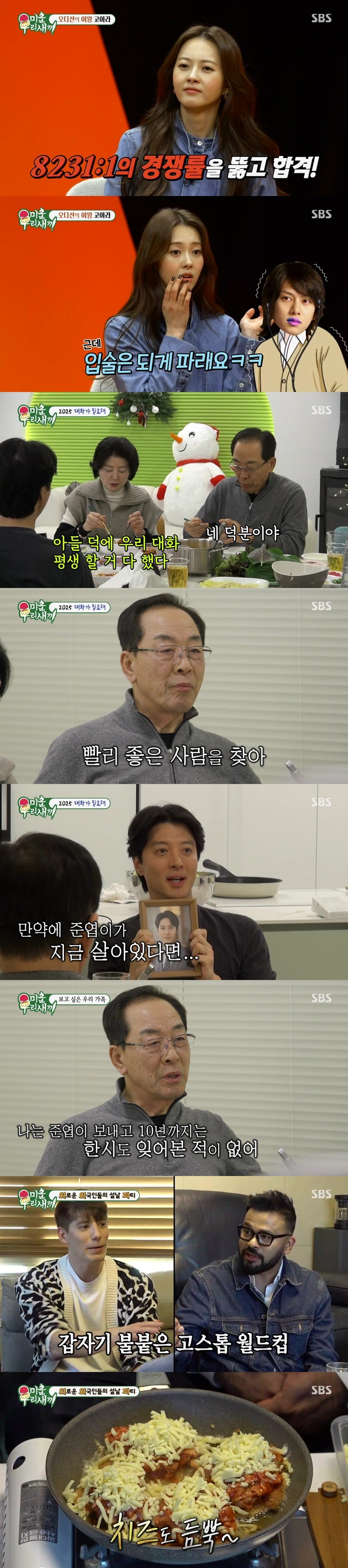 이동건은 "(동생) 준엽이가 성인이 될 때쯤 여행 왔던 그 추억을 다시 나누려고 이곳에 왔다"라며 부모님에게 AI로 만든 37살이 된 동생의 사진을 선물했다. 낯설면서도 그리운 둘째 아들의 사진을 보던 동건 父는 "내가 걔를 워낙 엄하게 다뤄서 그런지 아빠를 싫어했다. 내가 잘못해서 떠난 것 같은 죄책감 때문에 10년 동안 엄청나게 자책을 하며 살아왔다"라고 털어놓아 스튜디오를 눈물바다로 만들었다.
