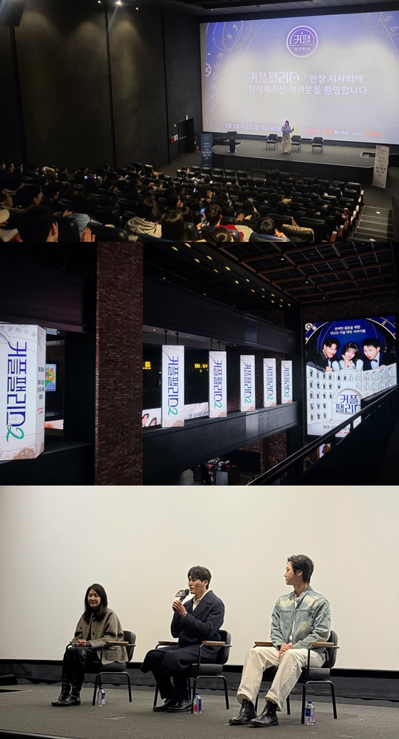 행사에서는 제작진 및 시즌1 출연진과 함께한 토크뿐만 아니라 퀴즈 이벤트, 경품 추첨, 포토존 등 '커플팰리스2' 관련 다채로운 이벤트도 진행됐다. 이 밖에도 CGV 용산아이파크몰 로비 공간 내 대형 LED 미디어를 통해 '커플팰리스2'의 티저와 포스터가 노출돼 영화관 방문객들에게 호기심을 불러일으켰다.