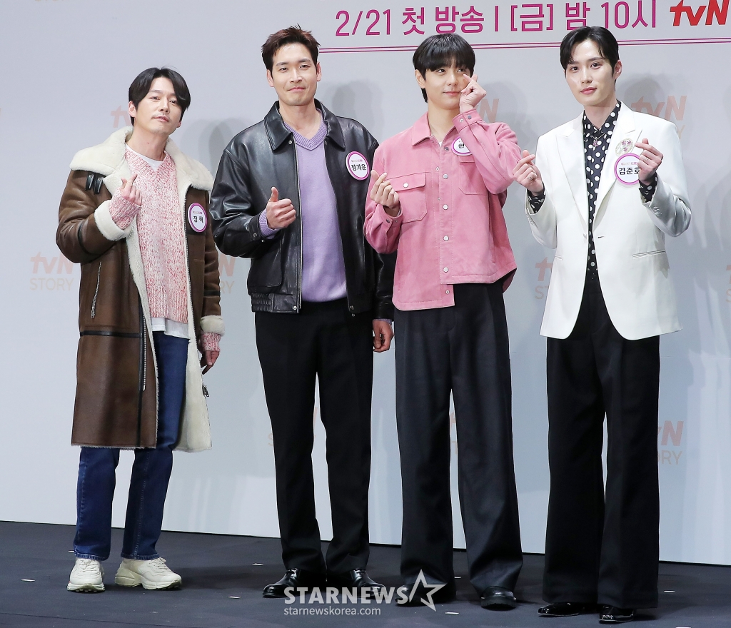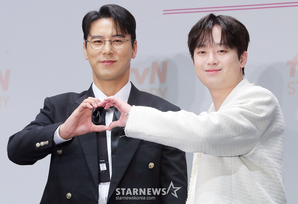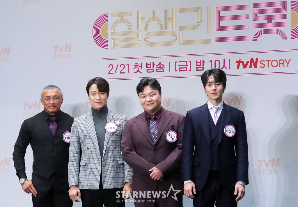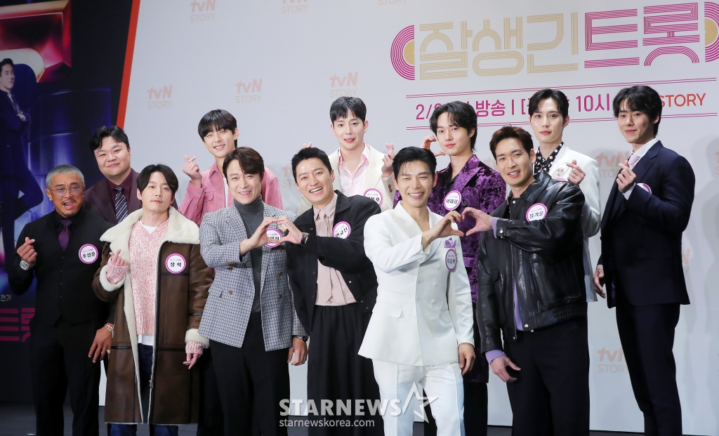 4일 오후 서울 구로구 라마다신도림 호텔에서는 tvN STORY 새 예능 '잘생긴 트롯' 제작발표회가 진행됐다. 행사에는 PD 황다원, MC 장민호, 이찬원과 출연진 12인 추성훈, 장혁, 최대철, 인교진, 지승현, 정겨운, 태항호, 현우, 김동호, 이태리, 김준호, 한정완 등이 참석했다.