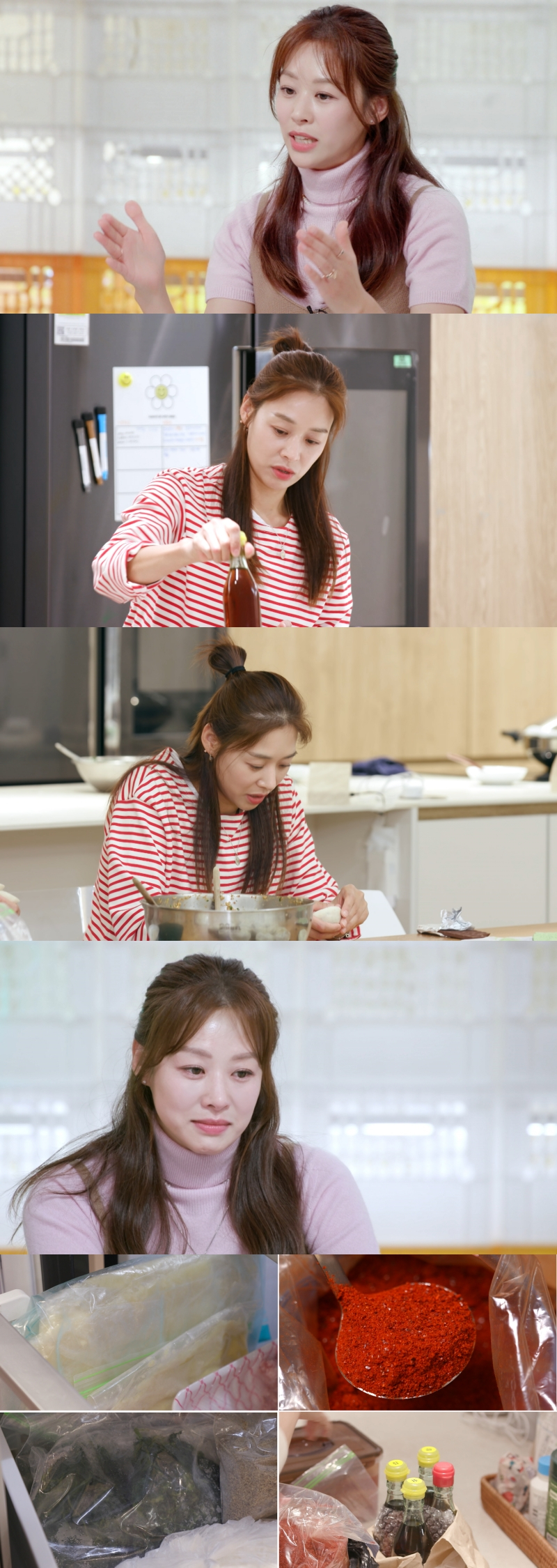 최근 녹화에서 공개된 VCR 속 장신영은 친정엄마가 늘 챙겨 주시는 엄마표 식재료들을 잔뜩 받았다. 엄마표 김치, 무생채, 다진 마늘, 참기름, 들기름, 고춧가루, 나물 반찬 등을 받은 장신영은 바로 엄마표 반찬을 맛보며 행복해했다. 장신영은 "지금까지 살림하면서 고추장, 된장, 매실청 등은 한 번도 사먹어 본 적이 없다"고 전했다.