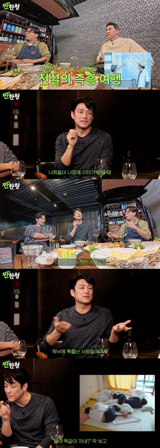 이에 대해 지진희는 "한 30년 전인 것 같다. 나는 돈을 벌 때고 (황정민과 조승우는) 돈을 못 벌 때였다. 차 타고 여행이나 가자 해서 지도를 펼쳐서 딱 나오는 곳으로 떠났다"고 회상했다.
