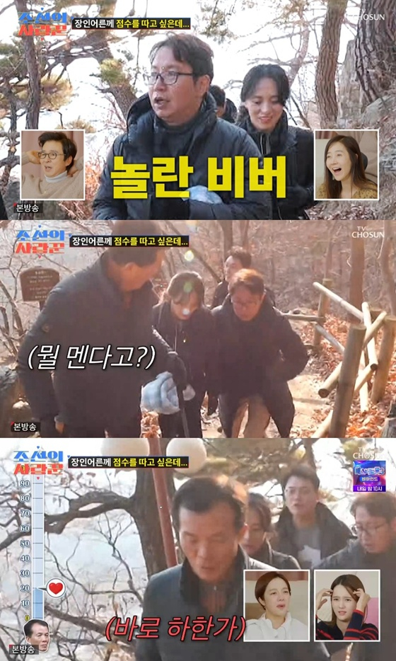 10일 오후 방송된 TV조선 예능 '조선의 사랑꾼'에서는 심현섭이 예비 장인에게 점수를 따기 위해 등산에 나선 모습이 그려졌다.