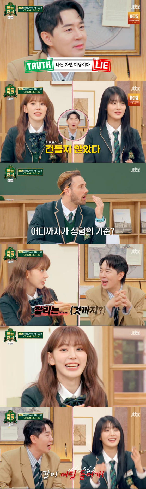 11일 첫 방송된 JTBC 새 예능 프로그램 '아는 외고'에서는 거짓 자기소개를 찾는 멤버들의 모습이 그려졌다.