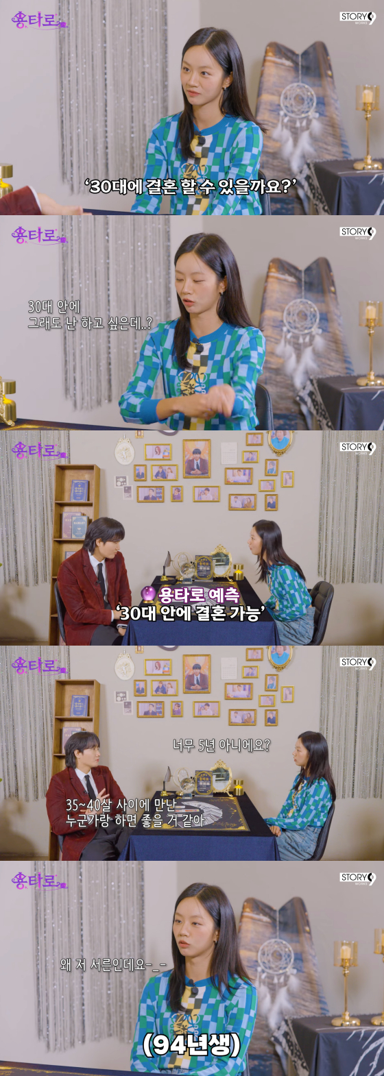 혜리는 또 "저 항상 결혼운 없다고 나온다"고 토로하자 이용진은 타로점을 통해 "30대 안에 결혼할 수 있을 것"이라고 위로했다.