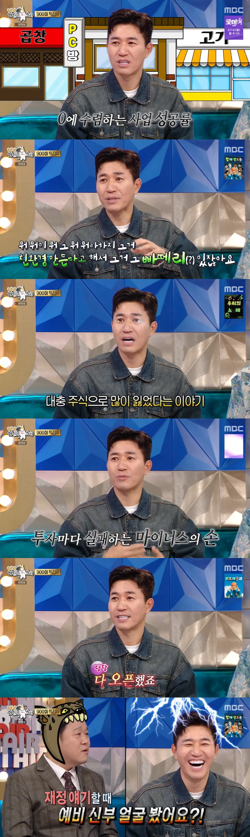 이에 김종민은 "많이 들어오면 좋겠다. 많이 뿌리긴 했다"라고 했고, 김구라가 "기대 많이 하고 있지?"라고 하자 김종민은 "그냥 적자여도 괜찮으니까 식사하러 오시면 좋겠다"라고 했다.