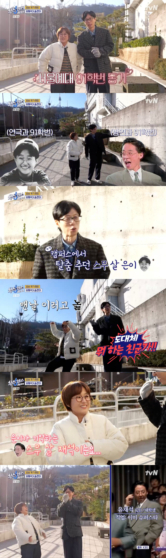 13일 첫 방송된 tvN 새 예능 프로그램 '식스센스: 시티투어'에서는 서울예대 91학번 유재석과 송은이가 서로의 첫인상을 곱씹는 모습이 그려졌다.