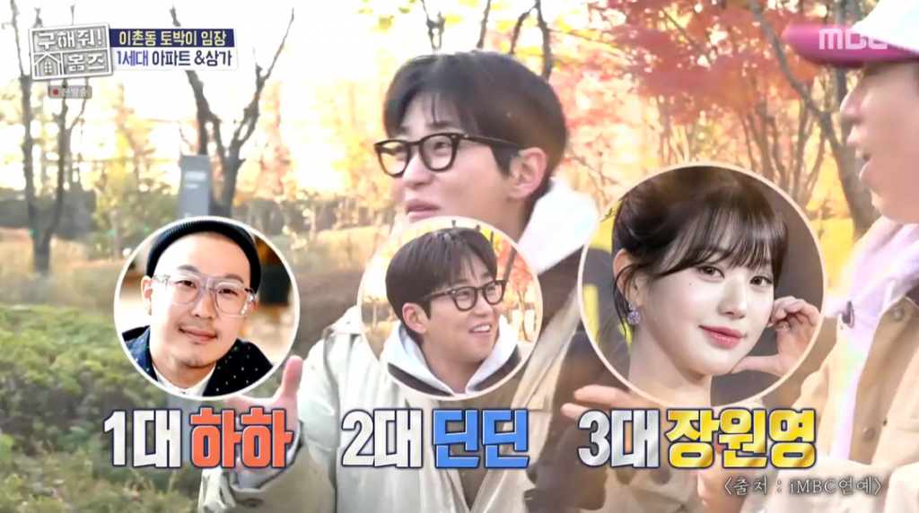 이날 딘딘은 '홈즈' 방송 초반부터 동부이촌동을 향해 자부심을 드러냈다. 동부이촌동 토박이라는 것. 그는 "정확하게 말씀드리겠다. 동부이촌동에 3대가 있다. 1대 하하, 2대 딘딘, 3대 아이브 장원영이다"라고 말했다.