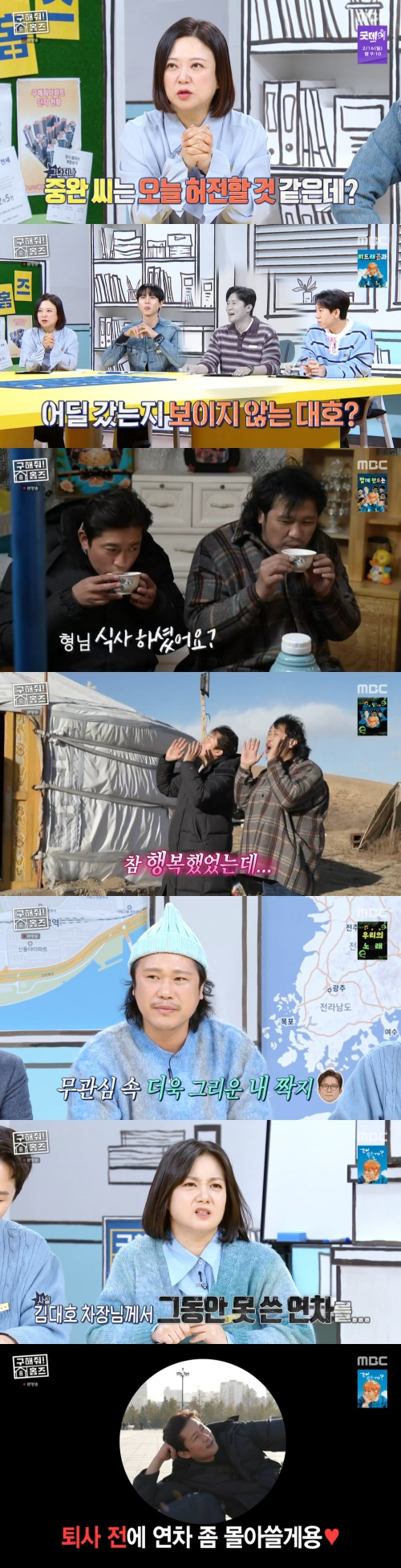 그런 와중에 이날 김숙과 박나래는 "중완 씨는 오늘 허전할 것 같다. 짝지가 없잖아"라며 김대호의 빈자리를 언급했다.