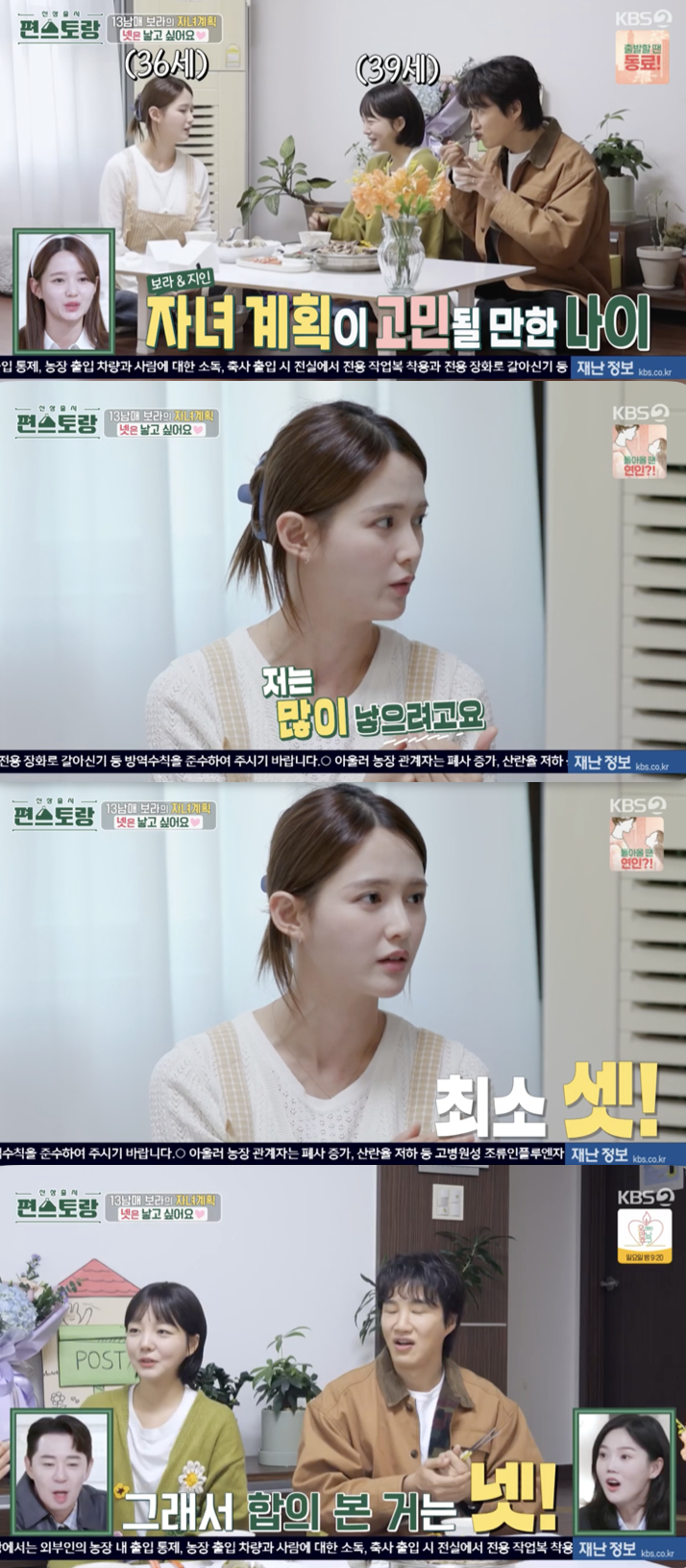 이날 문지인 김기리 부부는 남보라의 가족계획에 대해서도 조심스럽게 물었다.