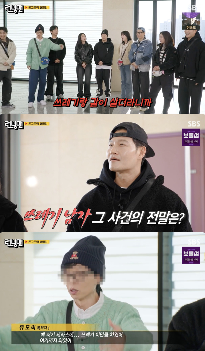 한편 유재석은 설 연휴에 '런닝맨' 남자 멤버들과 함께 김종국의 집에 방문했다고 밝혔다. 그러면서 그는 "얘네 집 이상해졌다. 쓰레기랑 같이 살더라. 쓰레기 아저씨다"라고 '작심 폭로'를 이어갔다.