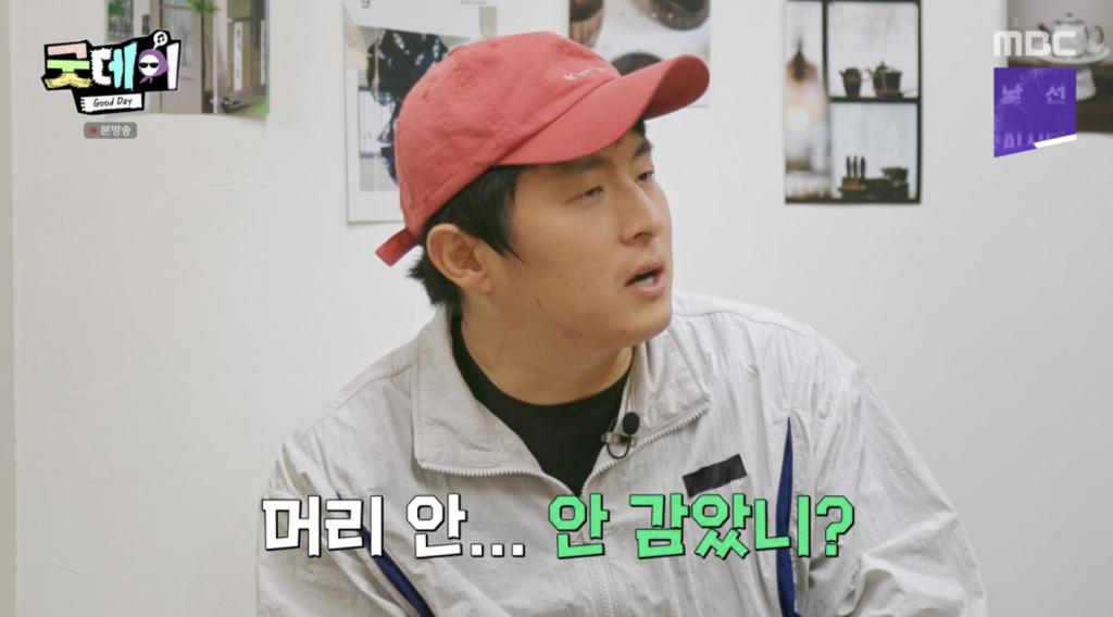 대답 중 지드래곤이 모자 쓴 머리를 긁적이자 기안84는 이를 놓치지 않고 "머리 안 감았니?"라고 악의 없이 묻기도. 지드래곤이 해명을 위해 모자를 벗고 "감았다. 샵 갔다 온 것"이라고 하자 "눌려도 멋있다"라며 동경의 눈빛을 숨기지 못했다.