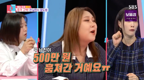 이어 "제가 환승인 경우도 겪어 봤고, 제 보증금 500만 원을 훔쳐간 남자도 있었다"고 말해 충격을 안겼다.