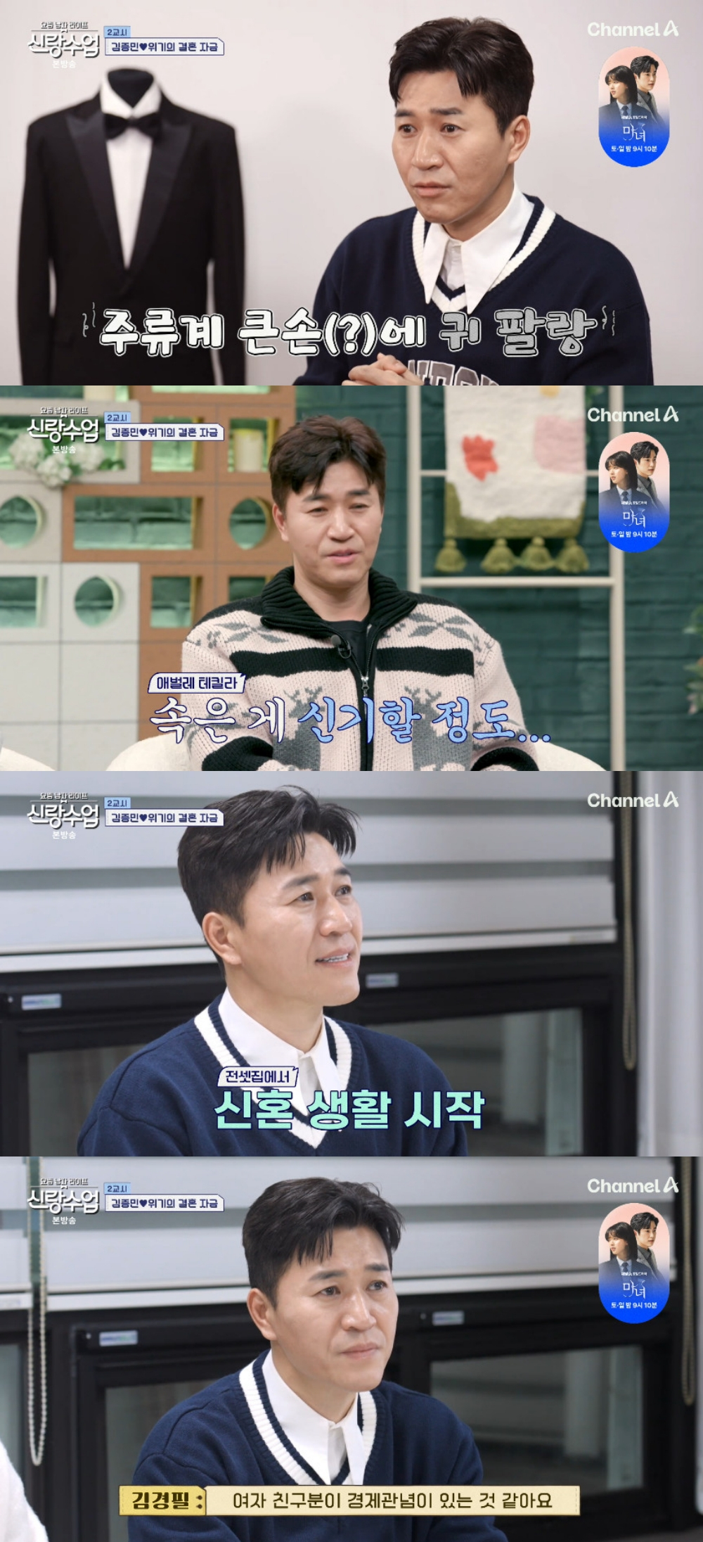 19일 방송된 채널A '요즘 남자 라이프-신랑수업'(이하 '신랑수업')에서는 4월 결혼을 앞둔 김종민이 경제 전문가를 만났다.