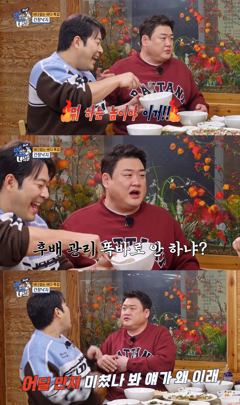 21일 방송되는 코미디TV 예능 프로그램 'THE 맛있는 녀석들'에서 개그맨 김해준은 촬영 내내 김준현을 들었다 놨다 하며 웃음을 유발한다.