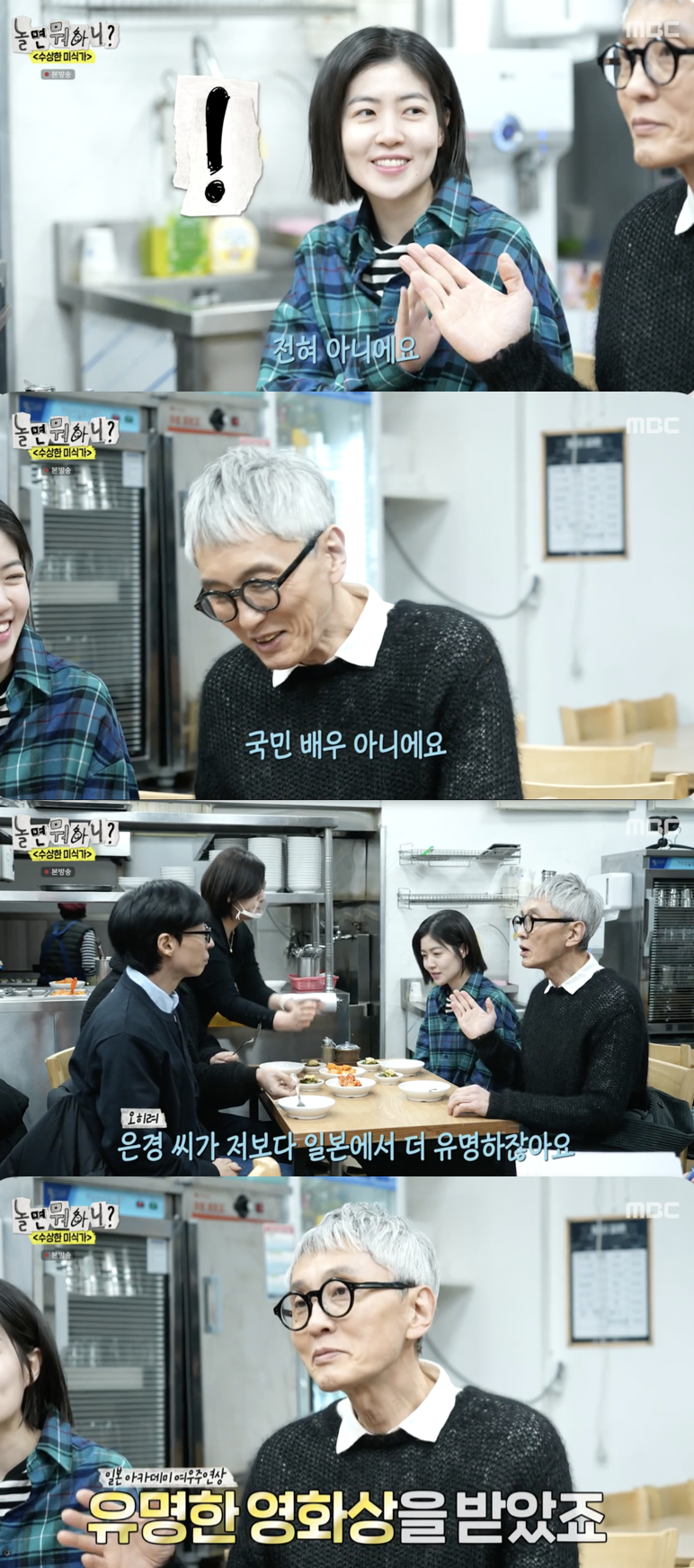 그러면서 "오히려 (심)은경 씨가 저보다 일본에서 더 유명하다. 주연 배우상 아무나 받는 거 아니다"라며 심은경이 일본 아카데미 여우주연상을 받은 걸 언급했다. 심은경은 마츠시게 유타카의 답에 "전혀 아니에요. 무슨 말씀을"라며 당황한 표정을 숨기지 못했다.