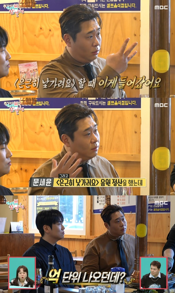 문세윤은 "음원 정산은 좀 걸렸던데 억 단위 나왔다"고 설명했다.