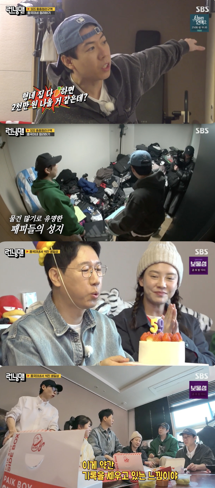 23일 방송된 SBS 예능 '런닝맨'에서는 '쓰레기 더미'라고 긴급 제보된 김종국 집에 멤버들이 방문해 집을 정리해주는 'SOS 중증정리구역' 레이스가 펼쳐졌다.