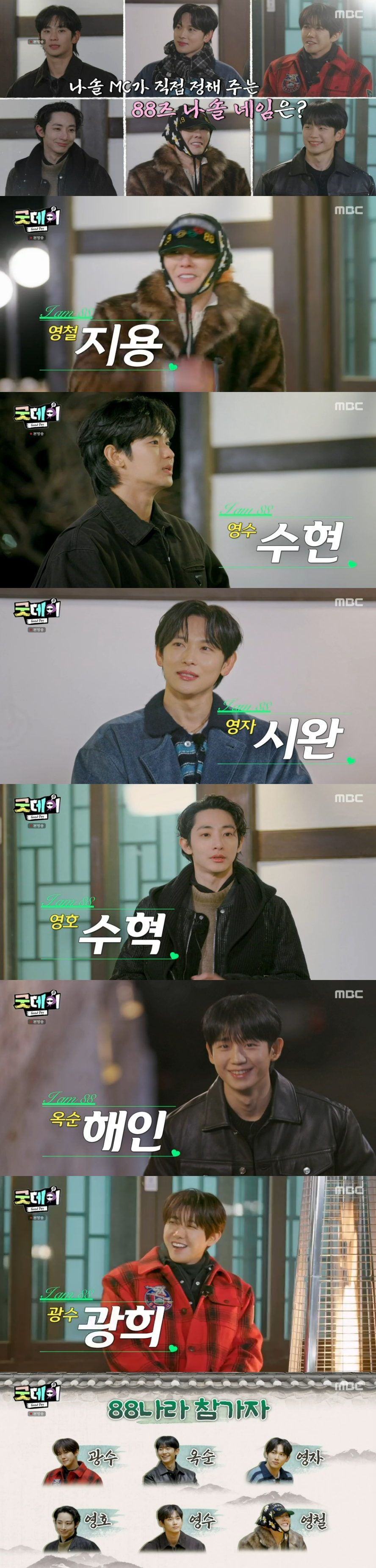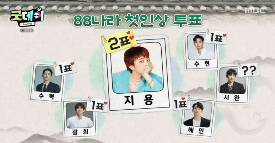 '굿데이'는 '나는 솔로' 콘셉트를 따라한 '88 나라'를 개최, 김수현과 정해인, 임시완, 이수혁, 황광희를 초대했다. 이를 본 데프콘은 "지드래곤은 내가 동묘에서 '영철'로 했다. 김수현은 가장 먼저 태어났다. 대화를 이끌고 판을 잘 깔아주는 맏형 느낌이어서 '영수'다. 임시완은 귀엽고 성격도 둥글둥글해서 '영자'다'. 이수혁은 피지컬이 넘사벽이어서 '영호', 정해인은 무조건 '옥순'이다. 내 눈엔 너무 예쁘다. 광희는 짝사랑에 가슴앓이하는 '광수'로 가야한다"라며 멤버들에게 '나솔 네임'을 지어줬다.