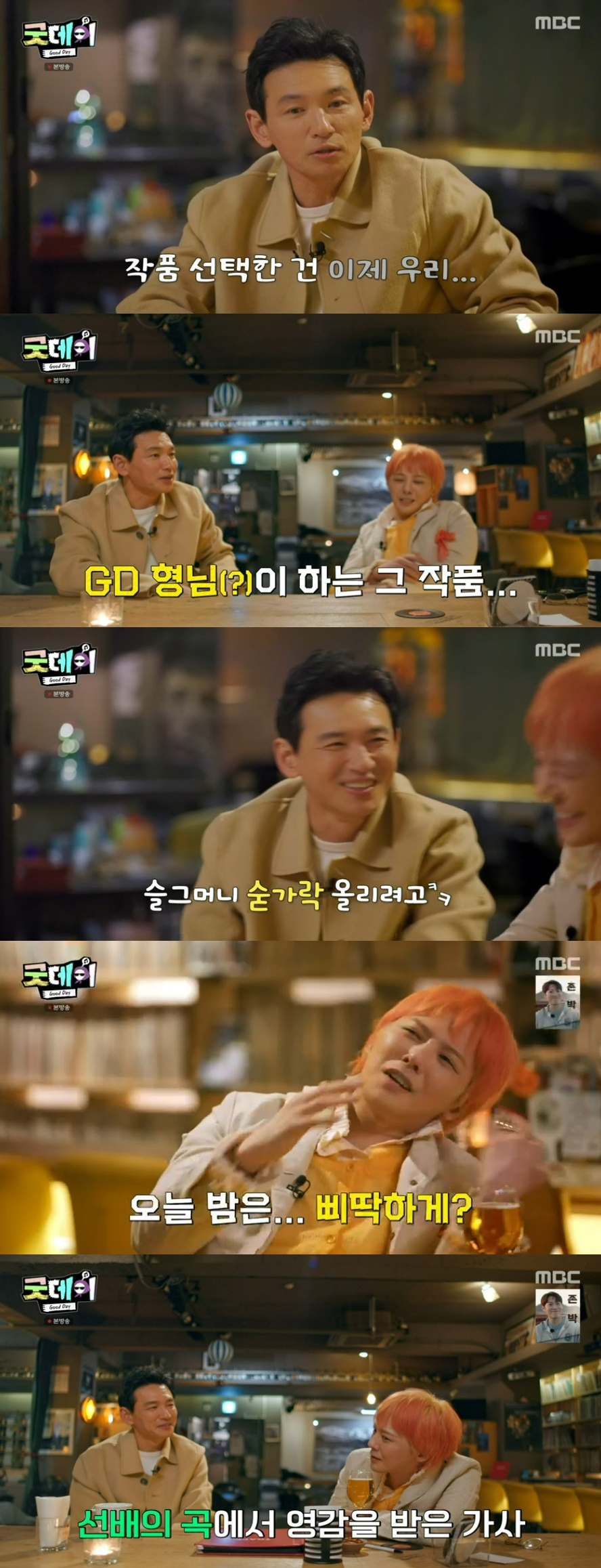 앞서 지드래곤은 서울의 한 LP바에서 황정민을 만났다. 그는 "나에게 좋은 말씀도 많이 해주시고 여러가지로 깨달음을 주는 사람이다. 내가 좋아하는 서글서글한 동네 형이다. 개인적으로 친분이 있었다. 콘서트에도 와주시고 롤모델처럼 좋은 자극을 계속 주시는 분이다. 내가 팬이다"라며 황정민을 향해 남다른 팬심을 드러냈다.