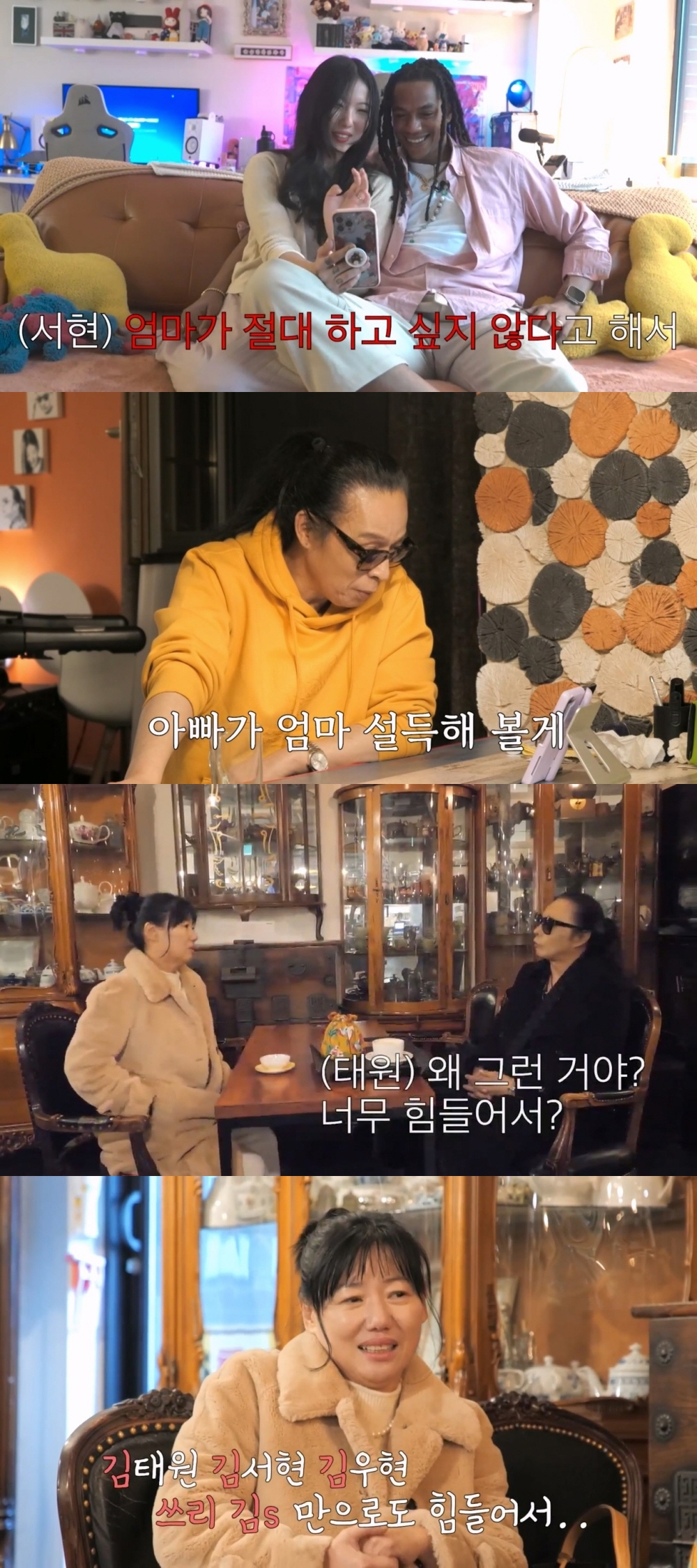 이날 김태원은 아내 이현주에게 "(딸이) 한국에서 결혼하는 거는 아예 싫다고 그랬잖아"라며 딸 김서현과 미국인 예비 사위 데빈의 한국 결혼식을 반대한 이유를 묻는다.