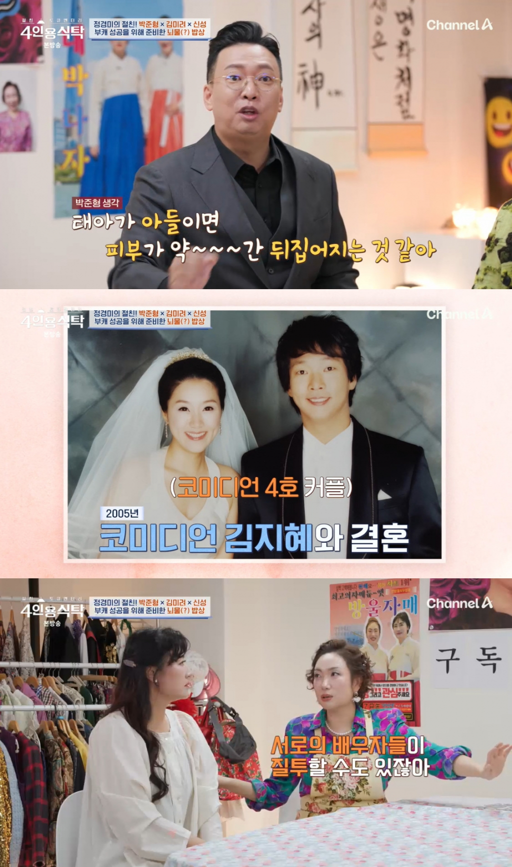 24일 방송된 채널A 예능 프로그램 '4인용식탁'에서는 코미디언 정경미, 박준형, 김미려와 가수 신성이 게스트로 출연했다.