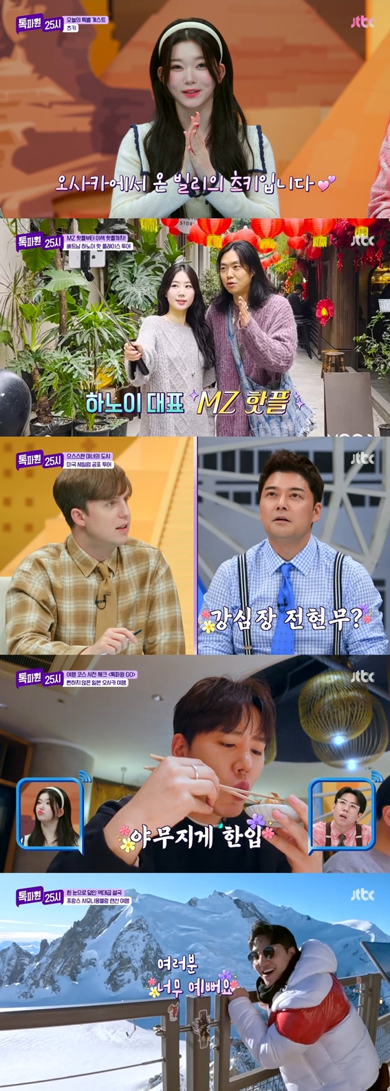 지난 24일 방송된 JTBC '톡파원 25시'(연출 홍상훈, 김선준)에서는 빌리(Billlie) 츠키와 함께 베트남 하노이, 미국 세일럼, 일본 오사카, 프랑스 샤모니몽블랑으로 떠나 트렌드, 역사, 특색, 대자연을 총망라했다.