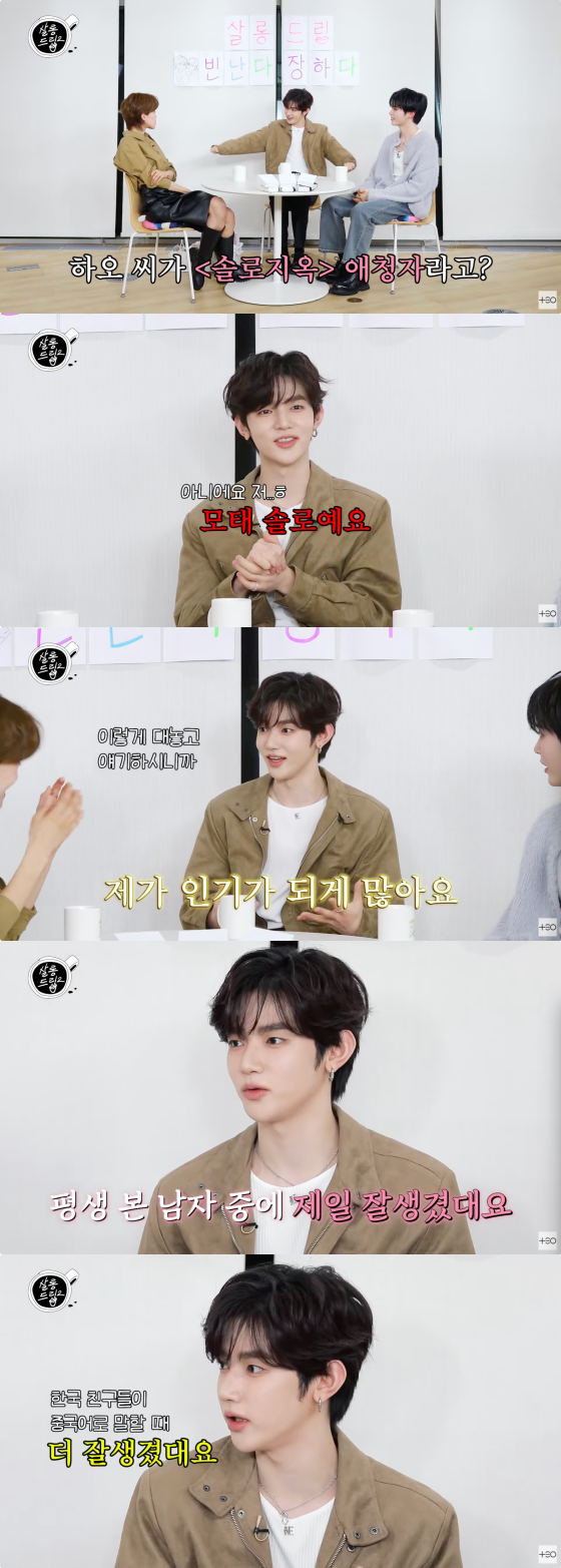 그러면서 "한국어 말고 중국어로 소개하겠다. 한국 친구들이 제가 중국어 할 때 더 잘생겨 보인다고 하더라"고 엉뚱한 매력을 발산했다.