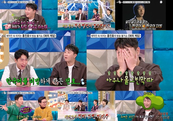 홍진호는 "발음 문제가 어제부터 있었나 생각해 보니까"라며 과거 프로게이머 시절 에피소드를 털어놨다. 러시아의 세르게이 선수와 중요한 게임을 앞두고 상대를 향한 각오를 밝히는 모습이 방송됐는데, 홍진호의 멘트가 한국어 더빙이 됐었다. 이어 실제 증거 영상이 공개되자, 스튜디오의 4MC와 출연진 모두 박장대소를 터트렸다. 홍진호는 "웃기려고 한 게 아니라.."라며 당시 본인도 당황했던 심정을 토로했다.