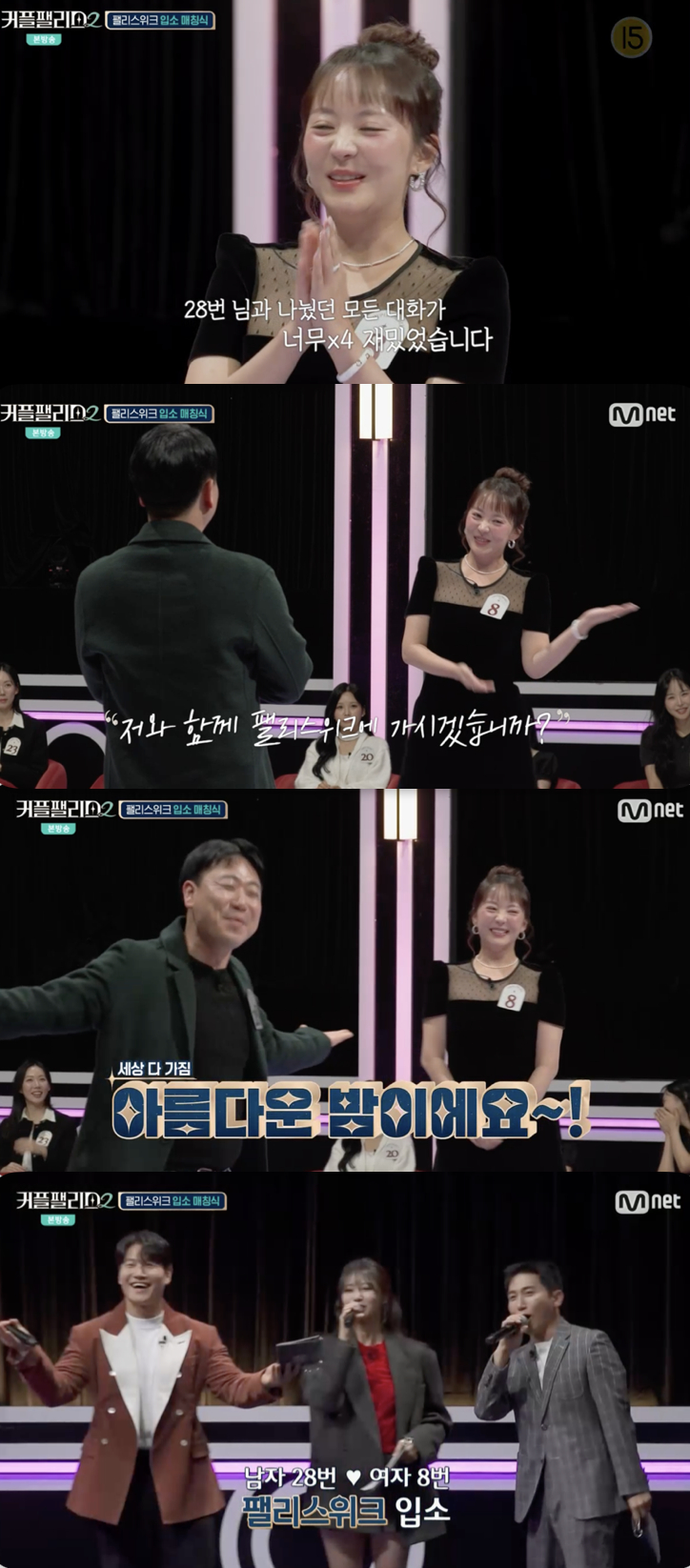 26일 방송된는 Mnet '커플팰리스2' 4회에서는 서로를 첫 번째로 선택해 매칭된 커플만이 입소할 수 있는 대망의 합숙 관문 '팰리스위크' 매칭식이 진행됐다.
