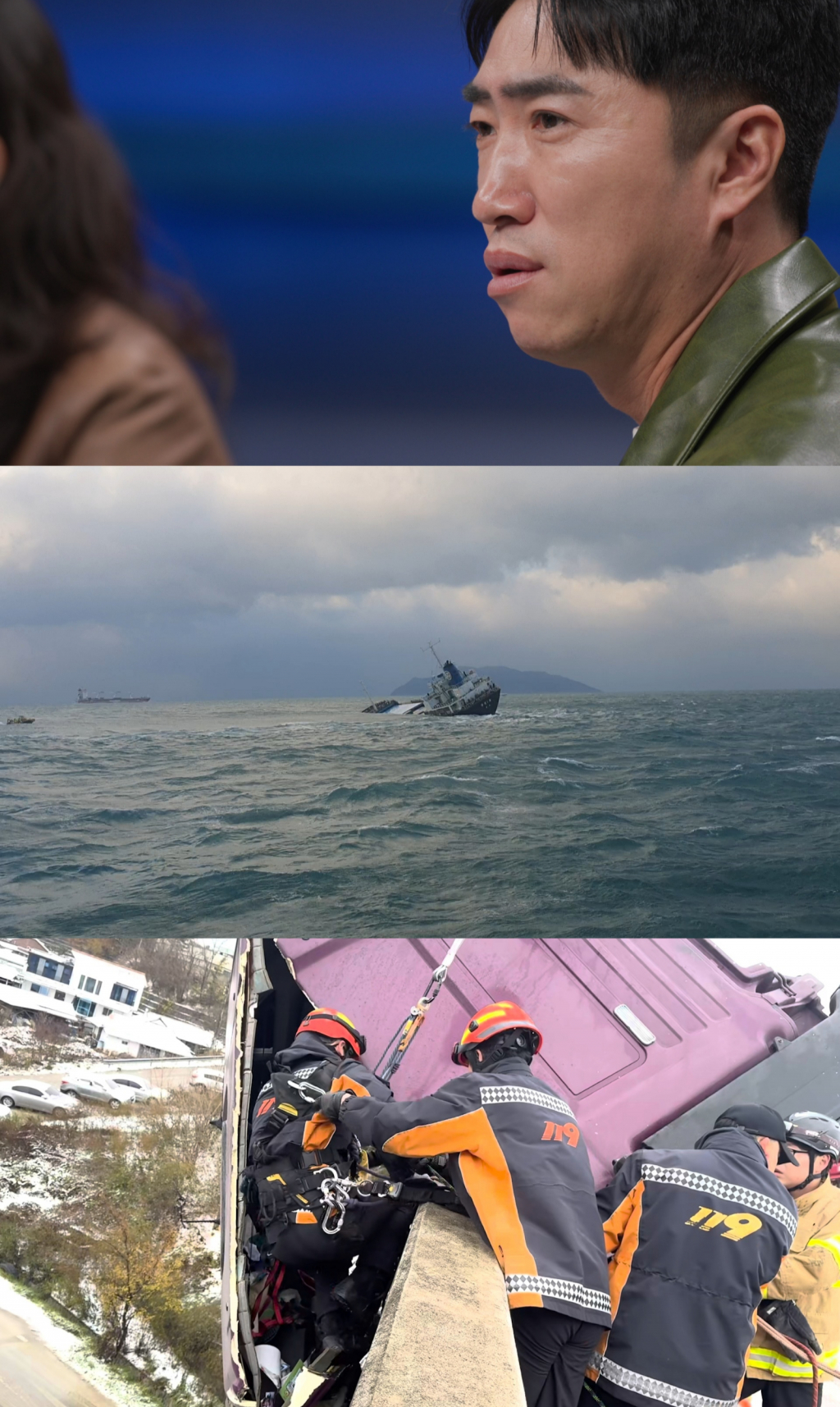 이어 침몰하는 배 위에 위태롭게 매달린 선원들의 모습이 포착된다. 구조선에 탄 해경이 "빨리 뛰어내리세요"라고 외치지만, 패닉에 빠진 선원들은 선뜻 몸을 던지지 못해 긴장감이 고조된다. 간신히 용기를 낸 일부 선원들이 하나둘 바다에 뛰어들며 구조가 진행되지만, 끝내 한 명의 선원이 실종되면서 스튜디오는 슬픔에 잠긴다.