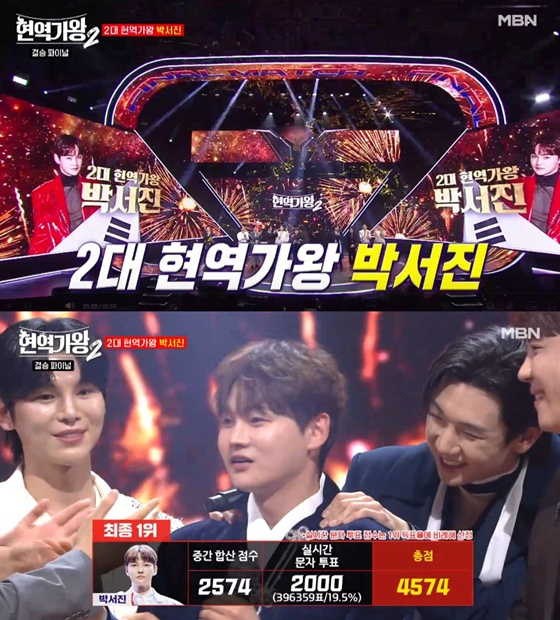 한편 '현역가왕2' 최종 우승은 박서진이 차지했다. 이어 진해성, 에녹, 신승태, 김준수, 최수호, 강문경이 차례로 톱7에 이름을 올렸다. 우승자 박서진에게는 우승 상금 1억원, 국내외 투어 콘서트, 우승곡 제작 등 특전이 주어진다.
