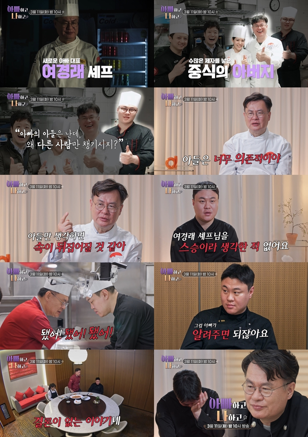 이어서 '아빠하고 나하고'는 여경래 부자의 직장 동료보다 못한 냉랭한 부자 사이를 담은 티저 영상을 공개해 다시 한번 시선을 끌었다. 여경래는 '중식 여신' 박은영, '철가방 요리사' 임태훈, '딤섬 여왕' 정지선 등 수많은 제자들로부터 존경받는 중식의 아버지이기도 하다. 여경래는 지난 해 '흑백요리사: 요리 계급 전쟁'을 통해 제자들을 향한 끈끈한 애정과 인자한 성품을 드러내며 화제가 됐다. 그러나 이에 대해 아들 여민은 "내가 아들인데 왜 다른 사람을 더 많이 챙기시지?"라며 서운함을 표출했다. 또 "가족인데 알려주지도 않고... 알려주면 진짜 열심히 배웠을 것"이라며 아빠에 대한 불만을 드러냈다.