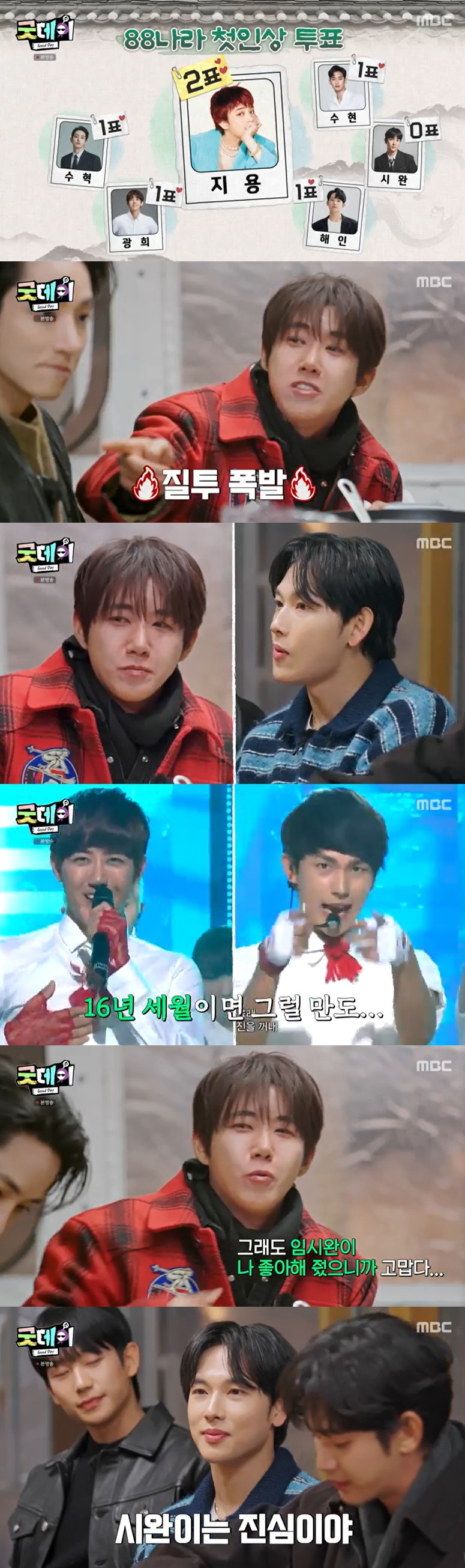 김수현이 "결국에 김치와 쌈장을 다들 찾지 않을까"라며 멤버들이 애교 3종 성공시 김치와 쌈장을 획득하는 게임을 했다. 황광희의 주도로 '88즈'는 '볼하트', '아궁빵', '체리 하트' 포즈를 성공했다.