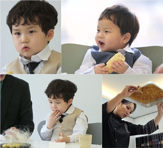 이와 함께 정우는 빠스를 바라보며 "비가 내려요"라며 음식 앞에서 일취월장하는 말솜씨와 표현력을 폭발시킨다. 또한 정우는 먹던 옥수수를 내려놓고 "최고"라고 외치며 초집중하는 것도 모자라 정지선을 향해 쪼르르 뛰어가며 직진 본능을 펼친다. 이후 은우와 정우는 입안에서 사르르 녹는 빠스의 달콤함에 빠져 "빠스 주세요"를 연신 외쳤다는 전언. 이에 박수홍은 "정우가 저런 극찬하는 거 처음이다"라며 놀라워한다.