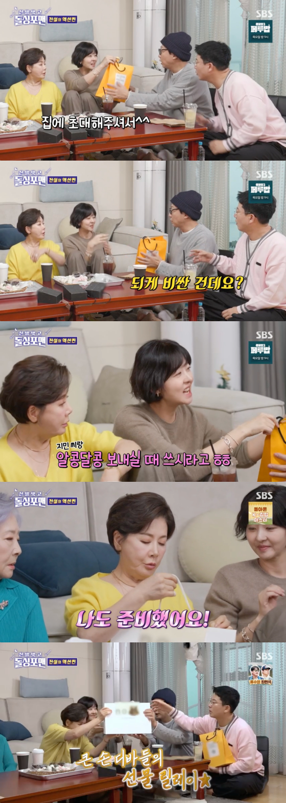 박정수 역시 선물 쇼핑백을 꺼내 들었고, 이태란은 고급 올리브 오일을 선물해 훈훈함을 자아냈다.