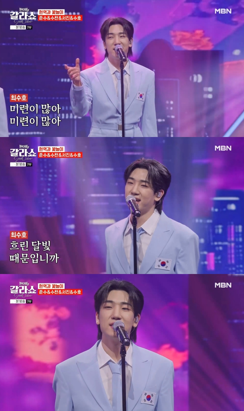 최수호는 지난 4일 방송된 MBN '현역가왕2 갈라쇼'에서 톱10 막내의 패기와 열정을 담은 무대로 '트로트 대세' 존재감을 뽐냈다.